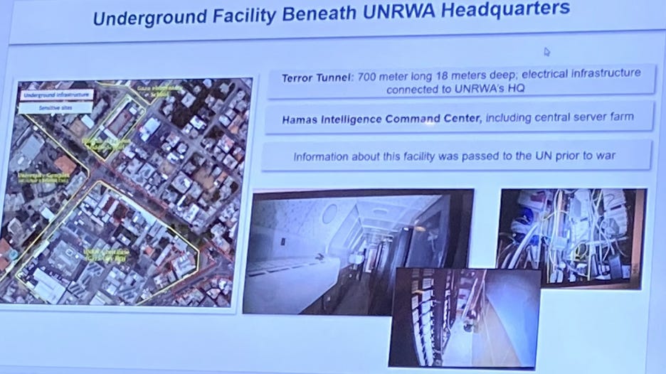 The Hamas Command Center was built directly under and connected to the UNRWA Headquarters in Gaza. It uses UNRWA for its utility supplies. That is dangerous collusion. Who can trust the UN any more? Who can trust the EU when it relies on the UN?